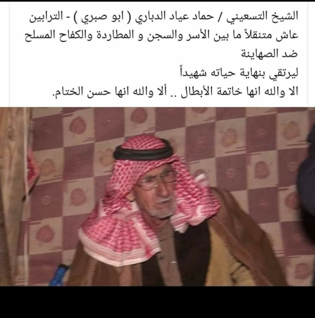 A post from Abo Ashraf identified the name of the elderly man: Hammad Ayyad Mansour al-Dabbari, 86 years old.