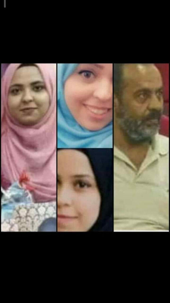 Those killed were all of the Amn family and were pulled from the rubble of the collapsed building. They were named by multiple sources as 51 year old Muhammad Ibrahim Amen, and his three daughters; 22 year old Warda Amn, Hadeel Amn, and Walaa Amn.