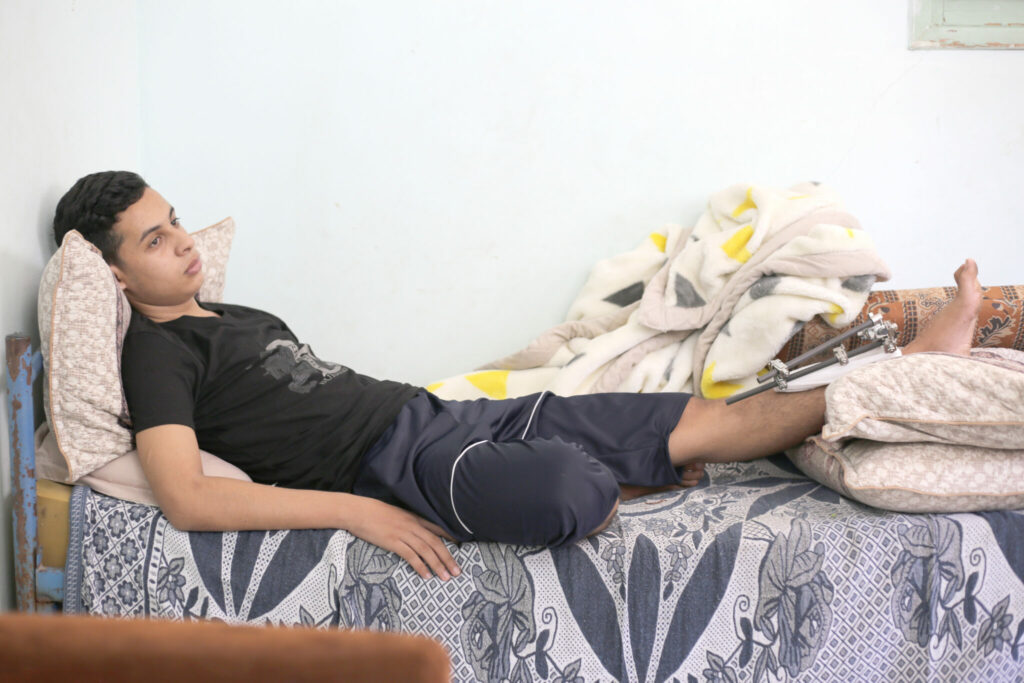 Yusef Aman, 15, who lost his father and three of his sisters in the incident, also provided testimony: “On Thursday, 13 May 2021, I woke up in the middle of the night and found myself in the passageway between our building and the building next door, which belongs to the al-’Alul family. There was rubble underneath me and on top of me and a blanket over my head. I was very scared and started shouting, “Help! Help! Get me out!” No one answered me. Suddenly I heard an explosion in our apartment, and I also heard people screaming and crying and calling for the neighbors and paramedics to help. It terrified me, because I heard the screaming of people who were trapped under the rubble with no one to save them or help them get out. I was scared I’d stay under the rubble and no one would come help me, that I’d die under the rubble before the paramedics got to me. But a few minutes later, civilian rescue teams came, and someone took the debris off me. I heard him say, “Martyr, martyr.” He meant me, but then he discovered I was alive. I leaned on him and we started walking. I could barely walk, because I was injured all over my body. I felt like my left leg was broken. I couldn’t step on it. Then the civilian rescue man had to let me go, and I carried on by myself. I crawled on the ground. I saw a little girl, our neighbor from the Abu Jarad family. She was lying on the ground. She grabbed onto my right leg, and the two of us crawled together to get away from the rubble that filled the street. I had a hard time crawling on the piles of debris. They injured me. At some point, paramedics showed up and took me to an ambulance. I was taken to the Kamal ‘Adwan Hospital in Beit Lahiya, and from there transferred to the Indonesian Hospital in Jabalya Refugee Camp, where I had surgery on my leg. They took shrapnel out of various parts of my body and put a metal plate in my lower left leg. Then, some relatives came to the hospital. They told me my father had been killed and so had three of my sisters. I went into shock. I never imagined I’d hear such a thing. This loss has caused me terrible pain.”
