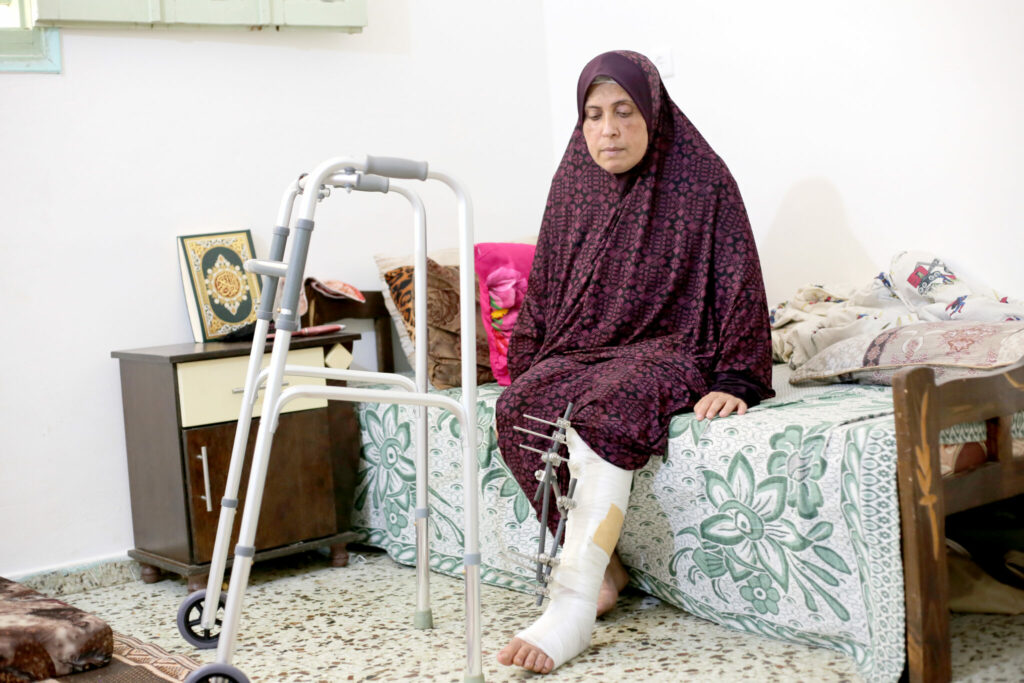 B’Tselem collected testimony from Muna Aman, 47, mother of six, who lost her husband and three of her daughters in the incident: “On 13 May 2021, at around 11:00 P.M., I woke up suddenly in complete darkness. There was debris, dust and smoke all around me. I couldn’t see anything. I had terrible pain all over my body, and it felt like things were piercing it. I also felt burns on my body and face. The pain was so strong, I screamed. Suddenly, one of my daughters came, I don’t know which one, and pulled me out. Just then, I heard another missile and lost sight of her. The place filled with smoke and dust. Then the paramedics came. I asked them to look for my daughters. They told me they’d take care of me first and then look for them. I lost consciousness and woke up the next morning at the ICU in a-Shifaa Hospital in Gaza City. I asked my relatives about my children, and they said they were alright. A few days later, the doctors moved me to the orthopedic department, where I was told my husband Muhammad had been killed. I went into shock and cried. A few minutes later, I was told that three of my daughters had also been killed – Hadil, Warda and Walaa. I went into shock. They were my hope, my whole life, especially Hadil, who was the most spoiled and was very attached to me. It was a shock for me. I never thought anything like that would happen to me. I don’t know how to go on living. After 14 days at a-Shifaa Hospital, I was transferred to the burn unit at al-’Awda Hospital because I had burns on my face and hands and shrapnel all over my body. I have burns on my head and a fractured left leg. They put a metal plate in. I’m still suffering. I’m in a great deal of pain, and I’m receiving treatment that’s expected to take months.”