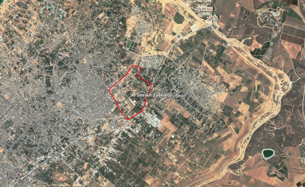 Reports of the incident mention the neighborhood of Al Sheikh Zayed (الشيخ زايد), for which the generic coordinates are: 31.537275, 34.515919. Due to limited satellite imagery and information available to Airwars, we were unable to verify the location further.