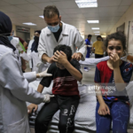 Images taken by Getty Images show at three children, a woman, and a man receiving medical treatment at Al Shifa Hospital following the strikes.