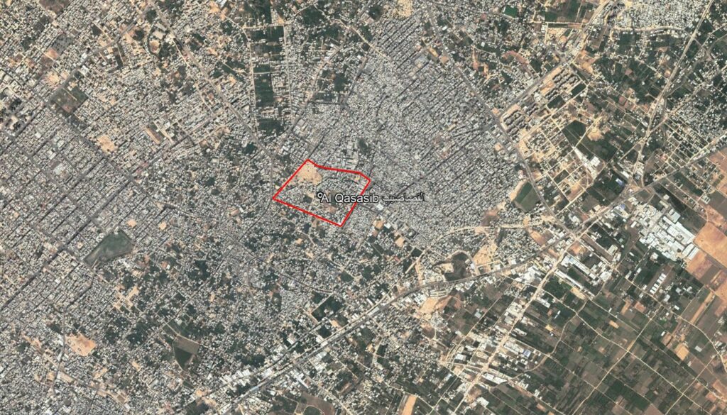 Reports of the incident mention the neighborhood of Al Qasasib (القصاصيب), within Jabalia (جباليا).