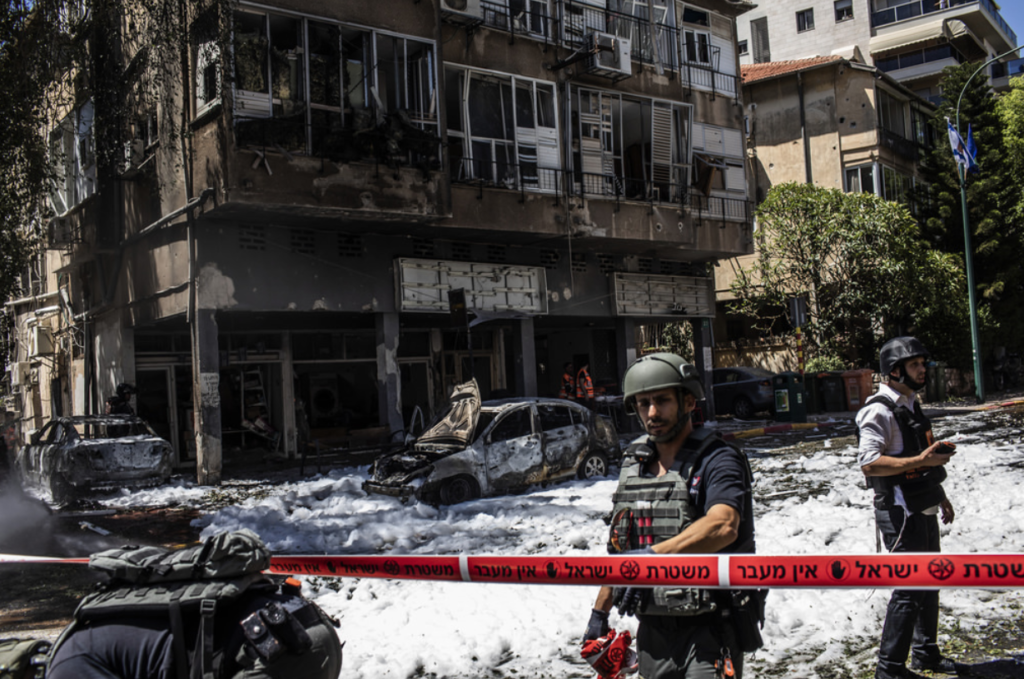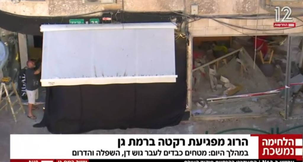 Reports of the incident mention a residential building being struck in the Ramat Gan (רמת גן) neighbourhood of Tel Aviv (תל אביב).
