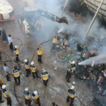 Syria Civil Defense described the incident: “Less than an hour after the first targeting, the regime forces and Russia bombed the area again, resulting in the injury of 10 civilians, and the outbreak of large fires in industrial facilities in the area”.