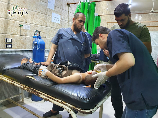 Between four and five civilians, including four children, were injured by alleged Syrian regime or Russian shelling of Darat Izza on July 4, 2023.