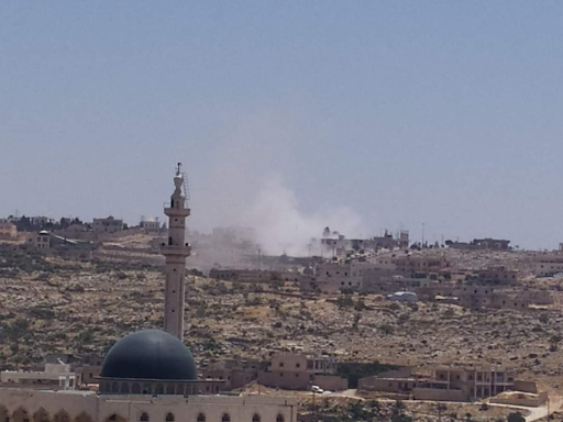 A video posted by @idleb_online shows “Syrian” artillery being fired, and refers to “targeting terrorist sites in the city of Darat Izza” with no mention of casualties. @SyriaCivilDefe reported that the shelling occurred in residential neighborhood and near a school