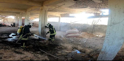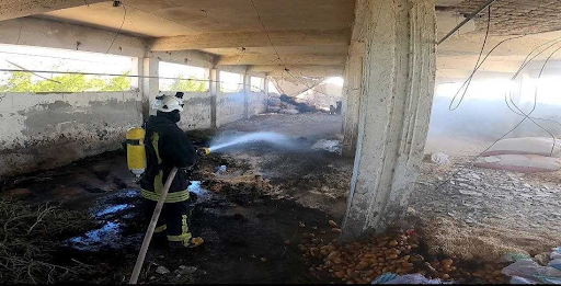 Baladi News reported that the fire took place in a residential house in Sarmin while the Syrian Civil Defence posted pictures of the fire in the disused poultry farm.