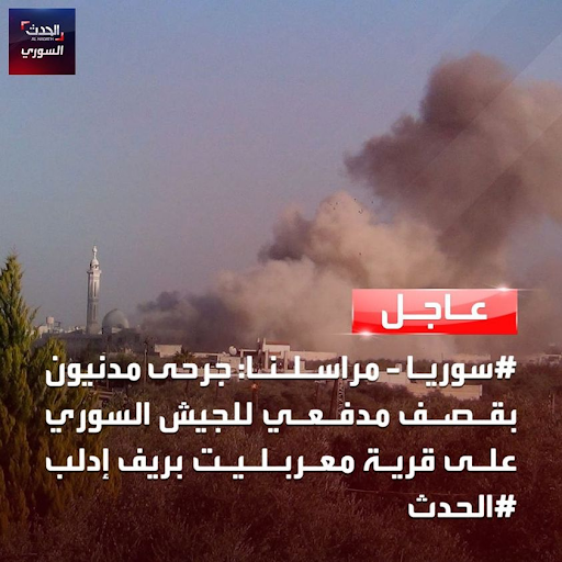 Local sources including @RadioAlKul reported that a number of civilians were wounded by artillery shelling, but did not give a specific number. Baladi News stated that “regime forces are intensifying their bombardment of the towns and villages of Jabal Al-Zawiya in the southern countryside of Idlib, and the town of Ma’arbelit, which has caused displacement as a result of the continuous shelling.”