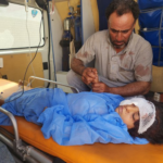 Syrian Civil Defense reported that its teams had transferred a child and a woman from Al-Amal Hospital in Ghandoura to Jarabulus Hospital, adding an image of a child with a head injury lying on a stretcher.
