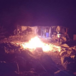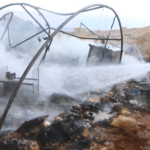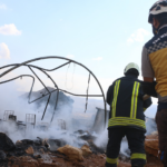 The damage caused by the airstrikes involved the burning of two tents and damage to civilians’ homes as a result of the pressure of the explosions caused by the air strikes. On Twitter/X, @SyriaCivilDefe posted images of the White Helmets volunteers extinguishing a tent fire caused by the air strikes and an ambulance, both captured in the early morning darkness. The SCD also posted a video showing the tents that were burnt and an injured woman lying on the ground treated by the SCD volunteer.