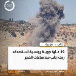 Sources reported up to 10 air strikes in the area that included Al-Qaswa camp, civilian homes near the town of Sheikh Yousef, as well as mountainous areas and stone quarries in the region west of Idlib. All sources claimed Russian forces perpetrated the airstrikes.