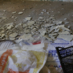 The post included additional photos of his tent destroyed and a school book in the rubble.
