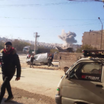 Initial information about the attack began circulating on Facebook at around 14:30. The few images available showed a large column of smoke and dust rising over the residential area. While no details have been given on the number and severity of casualties, a video posted on ORNET showed at least two wounded. The video showed several civilians on the street next to a damaged building, one of them, a teenager or a young man, limping with blood running from his forehead. A few seconds later, a group of people left the building, carrying a wounded man and loading him into a van.