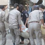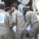 Two rockets, which SN4HR said contained cluster bombs (pictured below), reportedly killed two civilians including a child: “Four cluster bombs were left un-exploded and the FSA dismantled them by shooting from a very long range. The Russian aerial strikes were accompanied with shelling from rocket launchers by the Syrian regime.”