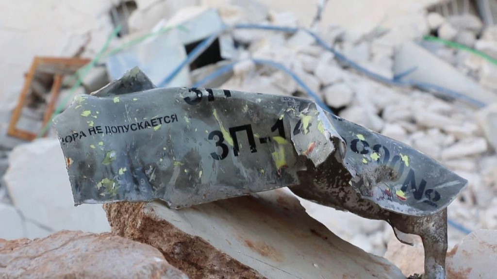 Russia claimed ‘civilian objects were not damaged‘ by 26 cruise missiles fired that day. According to Amnesty, “The Ministry of Defence did not clarify the exact locations of the strikes, but a map in a video that it released indicates that one of the strike points was in or in the immediate vicinity of Darat Izza. Weapons experts advised Amnesty International that images of remnants of the missile indicated that it was of a model used by the Russian navy, a Novatur 3M14 Kalibr-NK.”