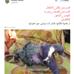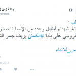 Reporting from the village, Orient News’ Hashem al Abdullah interviewed an unnamed male eyewitness: “At exactly 8:35am the Russian planes were heard roaming the skies. As soon as we heard the sound of the planes a raid was carried out on the village of Al Kastan. There were three missiles, I am not sure what type they were, either vacuum or cluster, I am not sure what the term is for them. As a result three children were killed , three little children and a girl is in very serious condition, I am not sure if she will survive. I hope she does. That’s what happened.