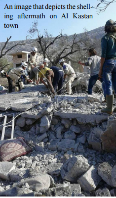Shaam News reported that “Russian warplanes carried out two raids with rockets on the town of al Kastan in the countryside of Jisr Al Shoughour, which led to the fall of three martyrs and dozens wounded, in conjunction with an intense rocket attack launched from the town of Guerin targeting Jisr al Shoughour.”
