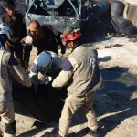 The White Helmets posted a number of images of its members attending the scene and attempting to put out a fire. They stated that “warplanes” carried out the attacks but did not say who they belonged to. The death toll had risen to 20 with more than 100 wounded, they added.