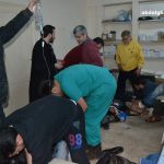 A nurse working in the hospital in Salheen gave the following testimony to Alaan: “We received a large number of people who were injured – more than 20, including women and children. Some were transferred to other medical points close. There was an urgent need for blood donors as some cases suffered severe bleeding.”