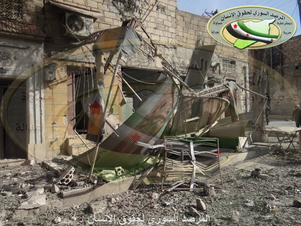In an initial report, the Syrian Network for Human Rights blamed regime warplanes, putting the death toll at six. However, in a later report it alleged that “Russian warplanes launched  missiles next to Al Khayrat mosque in Al Sakhour neighborhood that is under the control of armed opposition“, putting the number killed at eight including two children and 18 others wounded.
