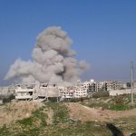 Shaam News reported that Russian warplanes carried out air raids targeting the Christian quarter (near the church) of the town in what they said was a “clear break of the truce“. Activists told the Network that there were three strikes by missiles, causing a severe explosion which led to the death of Farah A’bbadi and the fetus she was carrying. It added that more than 20 other civilians were wounded.