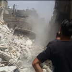 Orient News reported that “eight warplanes and nine helicopters and reconnaissance planes took turns in bombing Qadi Askar, Jisir Al-Hajj, Bustan Al-Qasir and Al-Sakhour.”
