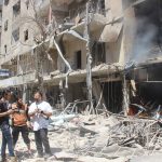 A further report did not say who was to blame, but that “warplanes and helicopters targeted the street of Bayan Hospital in Shaar street in Aleppo with more than 8 barrel bombs in addition to airstrikes“, killing eight civilians and wounding others.