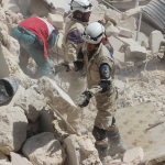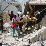 In a graphic and disturbing video, the Shaam News Network said that a mother and her daughter were pulled from the rubble following a strike, though it was unclear from the report who was responsible, as it referred to “Russian enemy planes and Assad’s helicopters” continuing to fly above Aleppo and its countryside “firing vacuum and cluster and phosphoric missiles and barrel bombs on the homes of unarmed civilians”. The footage shows a young child being dug out from the ground. At 2’04” a resident gives the following testimony: “They’re bombing indiscriminately. They’re bombing all the neighborhoods, they’re civilians here, women, a little girl, she’s 2-3 years old, what has she done to deserve to be killed? The woman we just pulled her out she’s all broken, another man all broken up and another woman dead. Shame on you world, shame on you Muslims, be scared of God. Where are the Arab countries? Where is the UN? We are being bombed every day, we don’t know where to go, have mercy on us.”