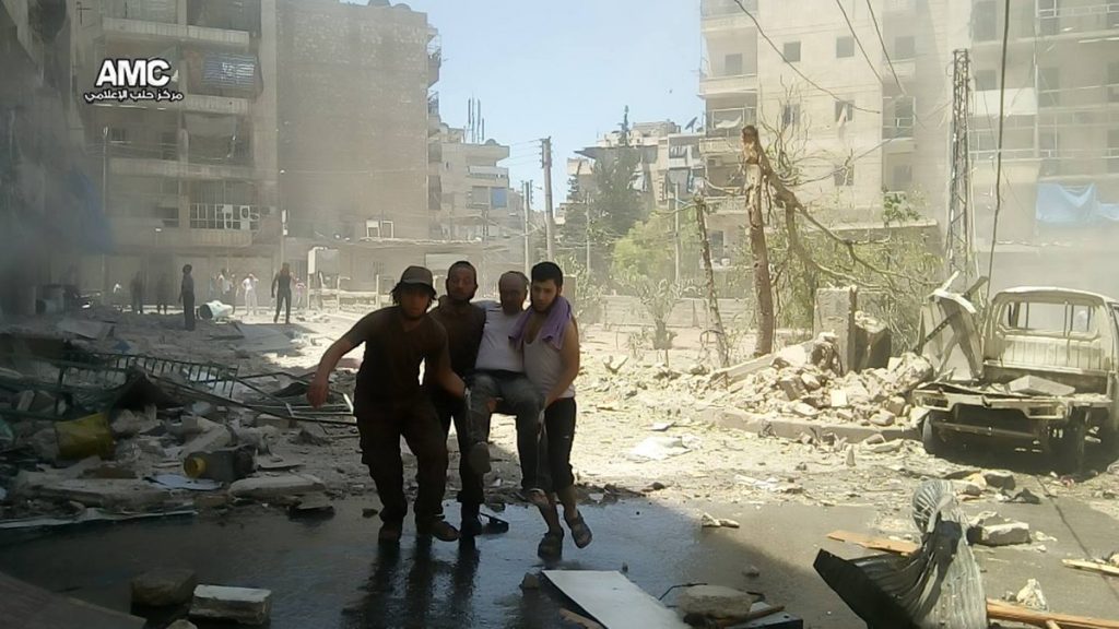 Eldorar News reported that both “Russian and Syrian warplanes were shelling with missiles and bombs in various areas in Aleppo including Al Shia’ar which killed and wounded civilians.”