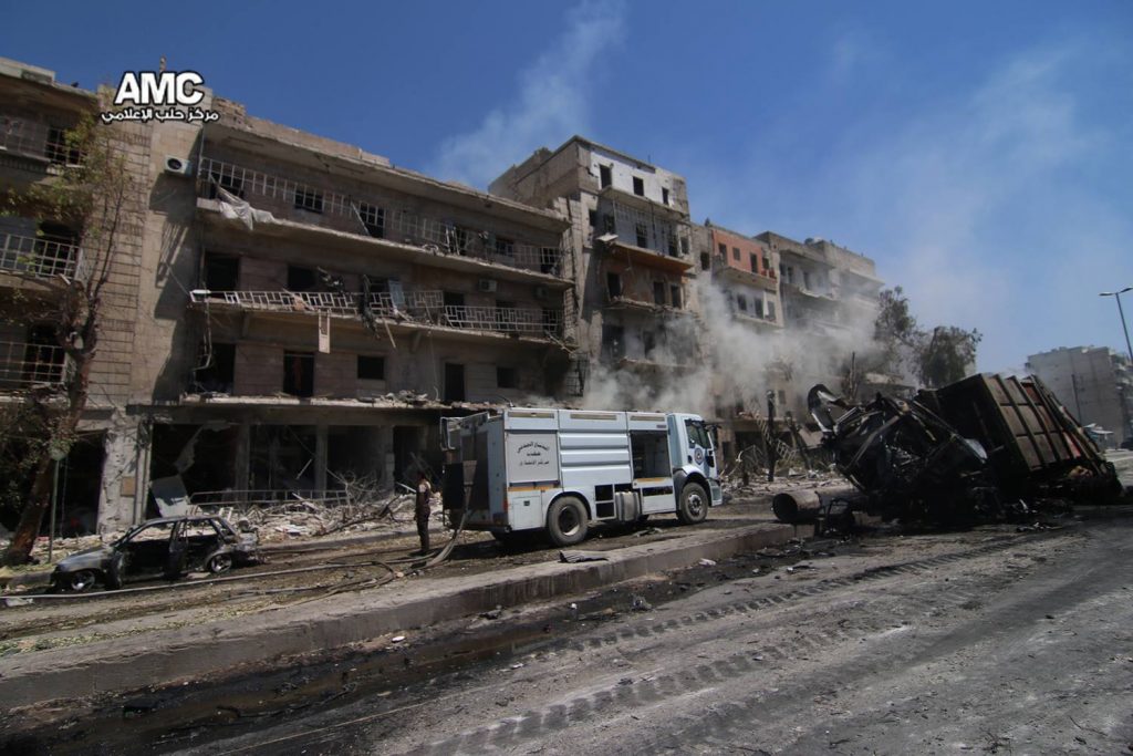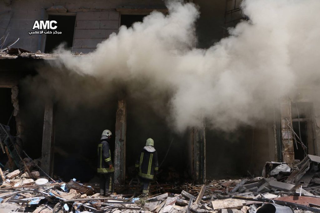 Smart News Agency Shahba Press and AMC news all blamed Russia. Al Jazeera pointed to bot Russia and the Assad regime carrying out strikes in three neighbourhoods including Al Salheen, Fardous and Hanano.