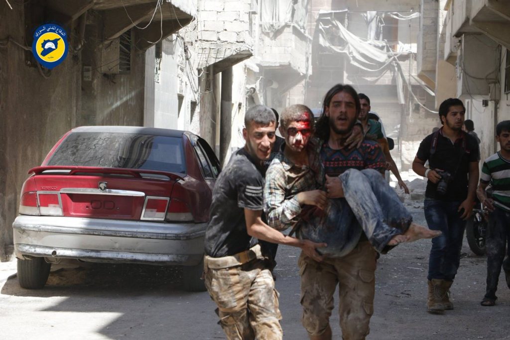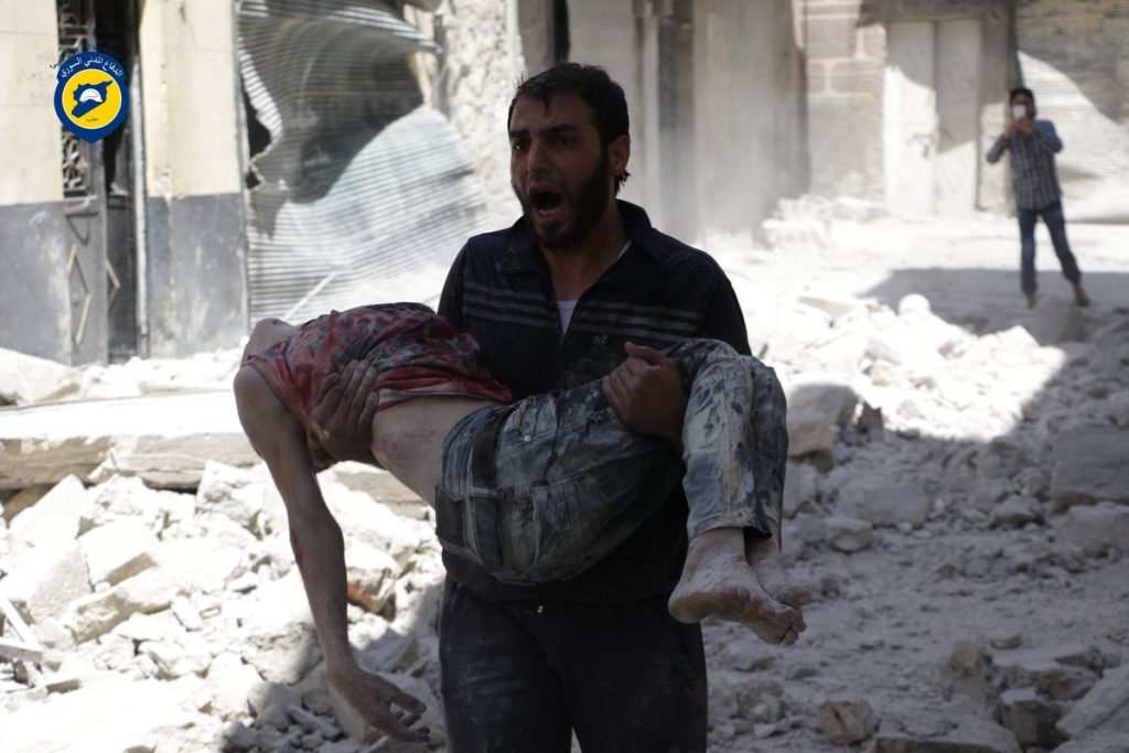 In multiple alleged Russian or Assad regime airstrikes which struck residential buildings, in Aleppo’s Al Maysar neighbourhood, a family of five and an elderly man were reportedly killed.