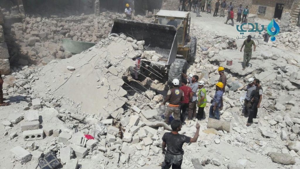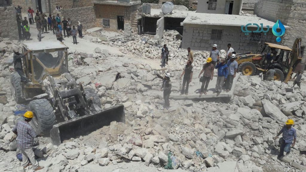 Baladi News published a video depicting volunteers searching the rubble for survivors of the airstrikes.