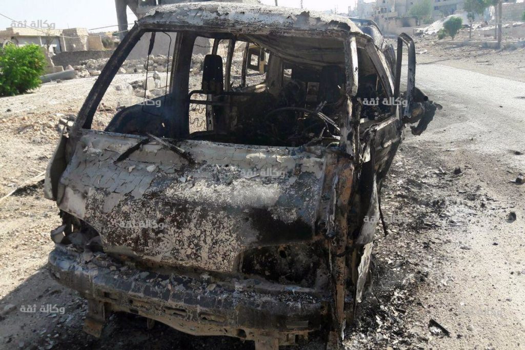 The Syrian Network for Human Rights said that three people were killed in a Russian strike. However, most other sources put the death toll at nine. According to multiple sources, bodies were roasted inside the cars.