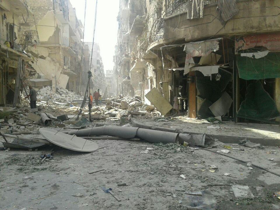 The majority of sources, including the Syrian Network for Human Rights, Halab News and AMC attributed the event to “explosive barrels dropped from regime helicopters.” Most reports put the death count at three.