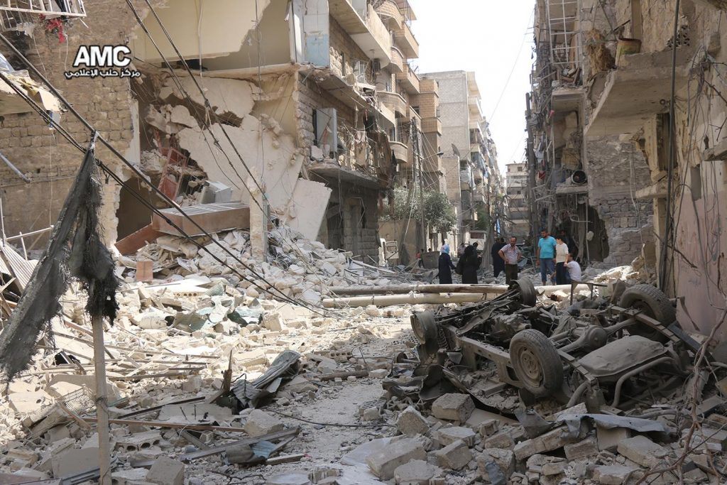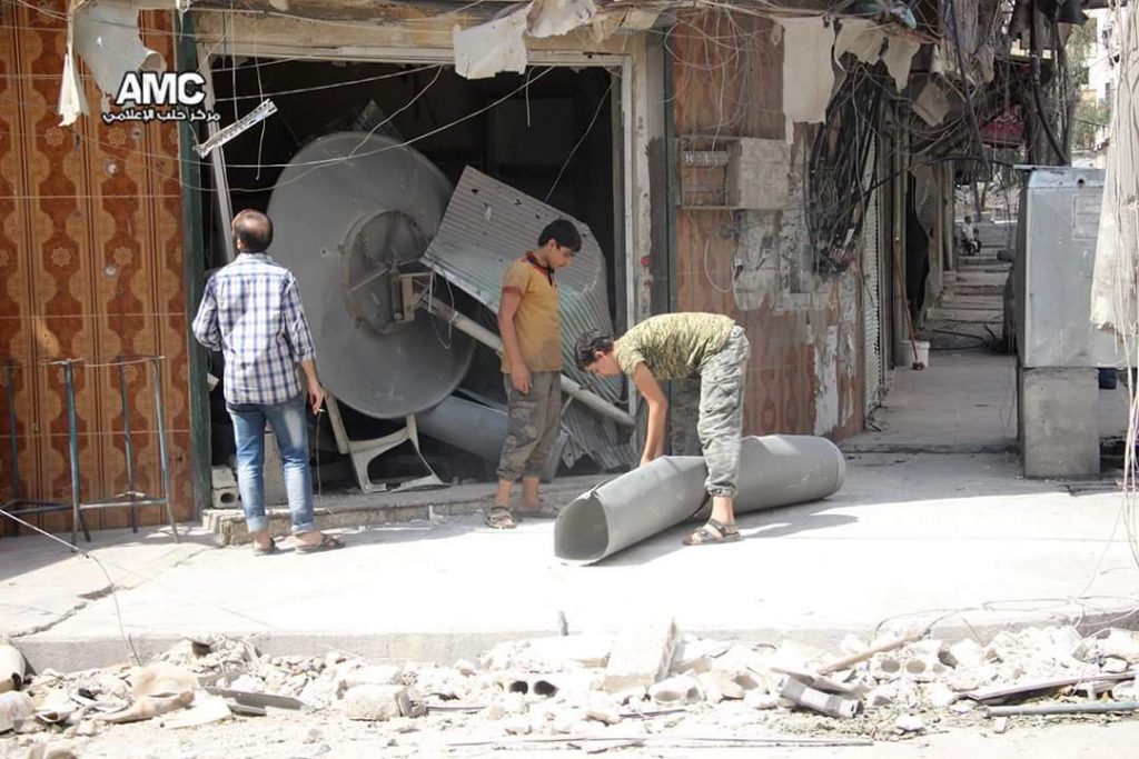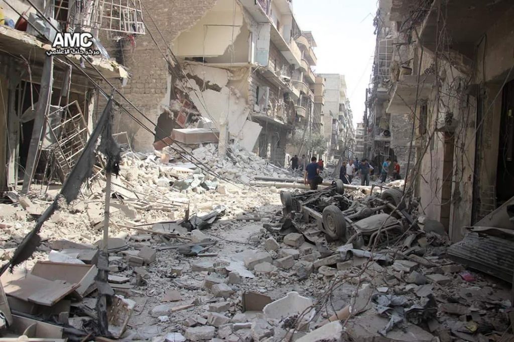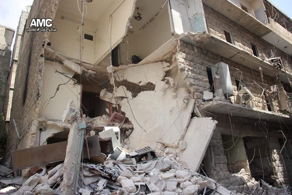 The majority of sources, including the Syrian Network for Human Rights, Halab News and AMC attributed the event to “explosive barrels dropped from regime helicopters.” Most reports put the death count at three.