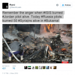 Deir Ezzor 24 insisted none of those killed has linked to so-called Islamic State: “At exactly 10:20 in the morning Russian aircraft launched two raids in a row on the perimeter of the Martyrs Park, where the first strike (using two missiles) left some casualties. Five minutes after the first raid, when paramedics and residents had gathered, the warplanes launched a second raid targeting the same place with the aim of causing a higher number of civilian casualties.”