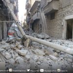 According to the Shaam News Network, “Russian and Assad planes continued their violent air raids using phosphorous and cluster bombs on the neighbourhoods of Aleppo and the towns and villages of its countryside. The raids led to the death of seven martyrs in al Salheen neighbourhood in Aleppo and several wounded in Anadan to the north.”