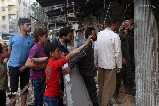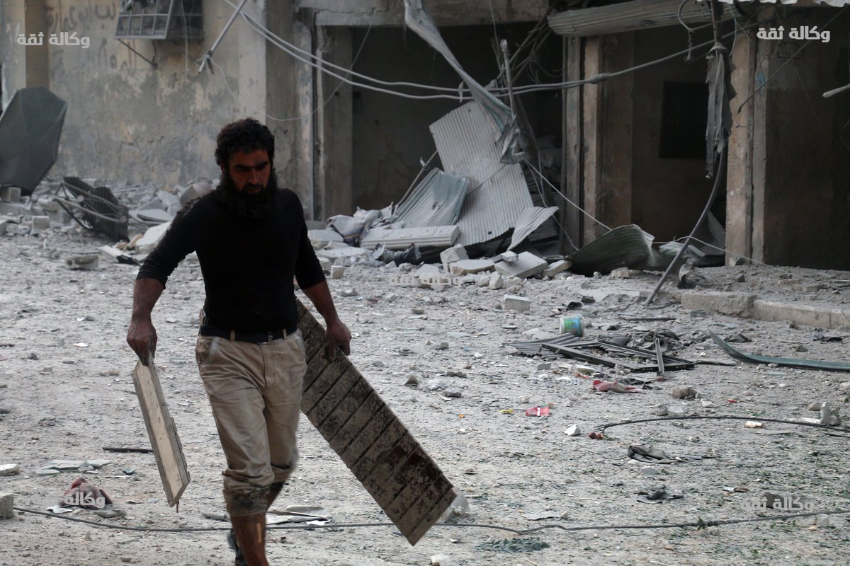 According to Maser Press, “four civilians were killed and dozens wounded due to Russian warplanes shelling in Al-Ansari”.