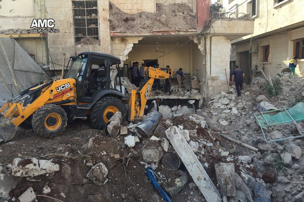 Syria News Desk provided details from the incident, reporting that “seven construction workers were killed and more than a dozen others injured, including civilians, at noon today [Oct 3rd], in a Russian airstrike on a field hospital in the Al sakhur neighbourhood”.