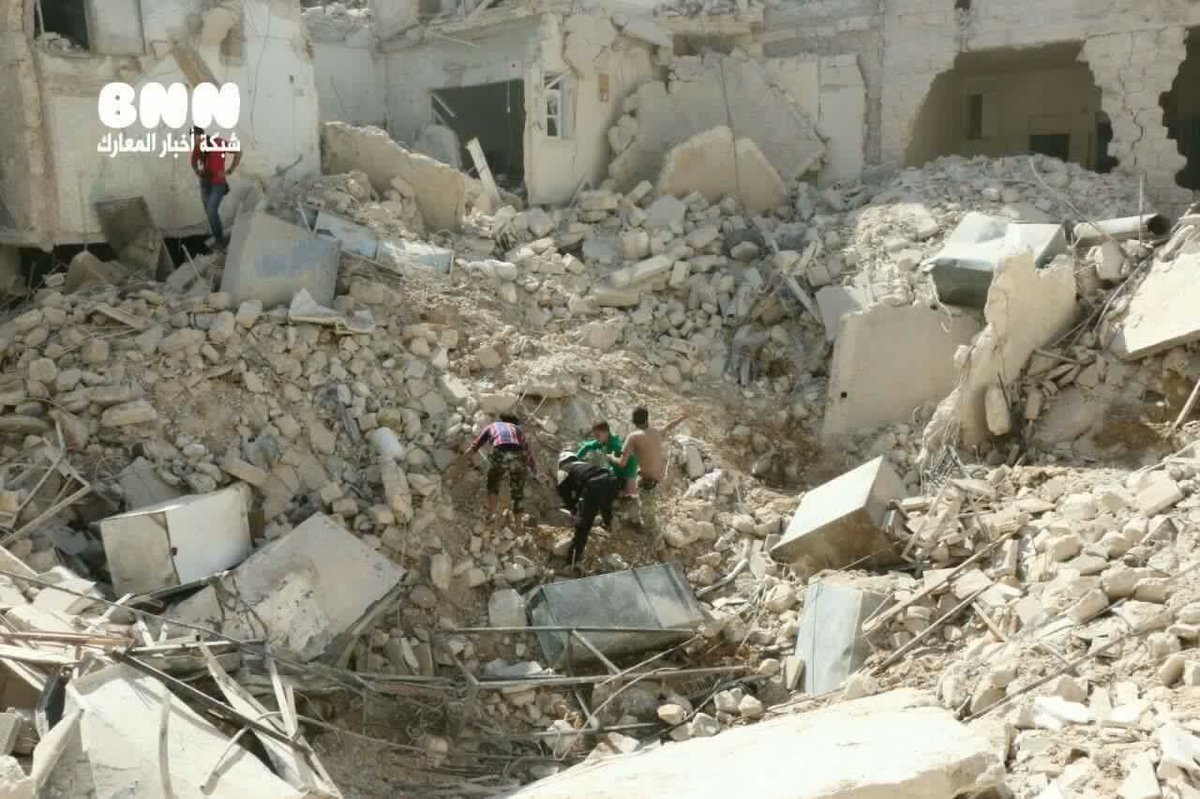Qasioun said that “Russian warplanes shelling Qaterji killed two civilians while the White Helmets are still searching for survivors in the rubble.” Other sources published similar reports.