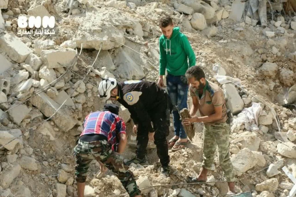 Qasioun said that “Russian warplanes shelling Qaterji killed two civilians while the White Helmets are still searching for survivors in the rubble.” Other sources published similar reports.