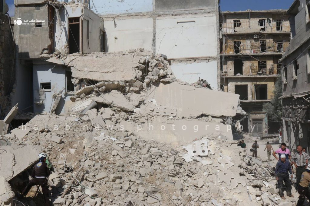 However, the Syrian Observatory for Human Rights reported that “regime warplanes targeted Bustan al-Qaser, Qaterji and al_Ferdous in eastern Aleppo”, while the Shaam News Network said that both Russian warplanes and regime helicopters launched “intense air raids with all kinds of rockets into neighborhoods of Aleppo”.