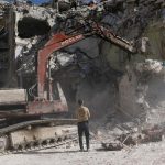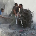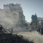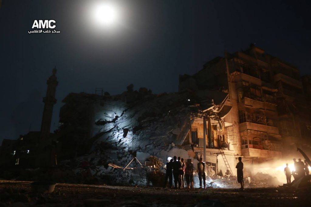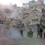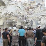 According to Focusaleppo, “On Sunday [Oct 16th] , Syrian and Russian warplanes targeted a car repair shop in the Al Qaterji district with four air strikes, killing 31 civilians and injuring more than 70. The civil defence said in a statement that the shelling targeted a five-story residential building, completely destroying it and damaging adjacent buildings inhabited by residents close to the targeted area. Civil defence teams were able to rescue many of the injured and transport them to field hospitals, though there are still people trapped under the rubble.”