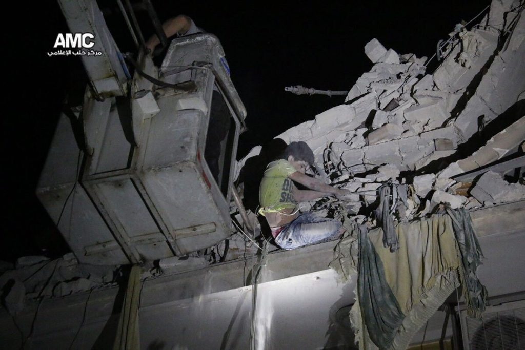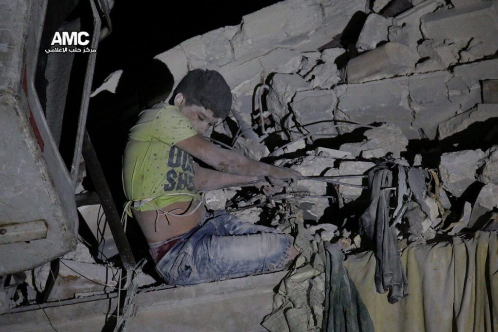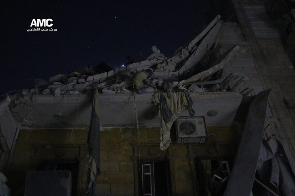 According to Focusaleppo, “On Sunday [Oct 16th] , Syrian and Russian warplanes targeted a car repair shop in the Al Qaterji district with four air strikes, killing 31 civilians and injuring more than 70. The civil defence said in a statement that the shelling targeted a five-story residential building, completely destroying it and damaging adjacent buildings inhabited by residents close to the targeted area. Civil defence teams were able to rescue many of the injured and transport them to field hospitals, though there are still people trapped under the rubble.”