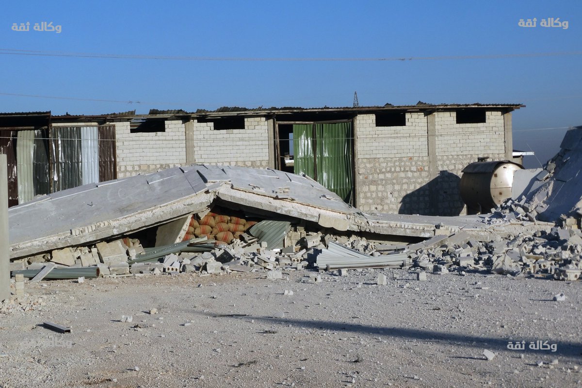 One civilian was killed in an airstrike on a grain storage center and a mill in the village of Babbto in the countryside of western Aleppo, according to sources on the ground.