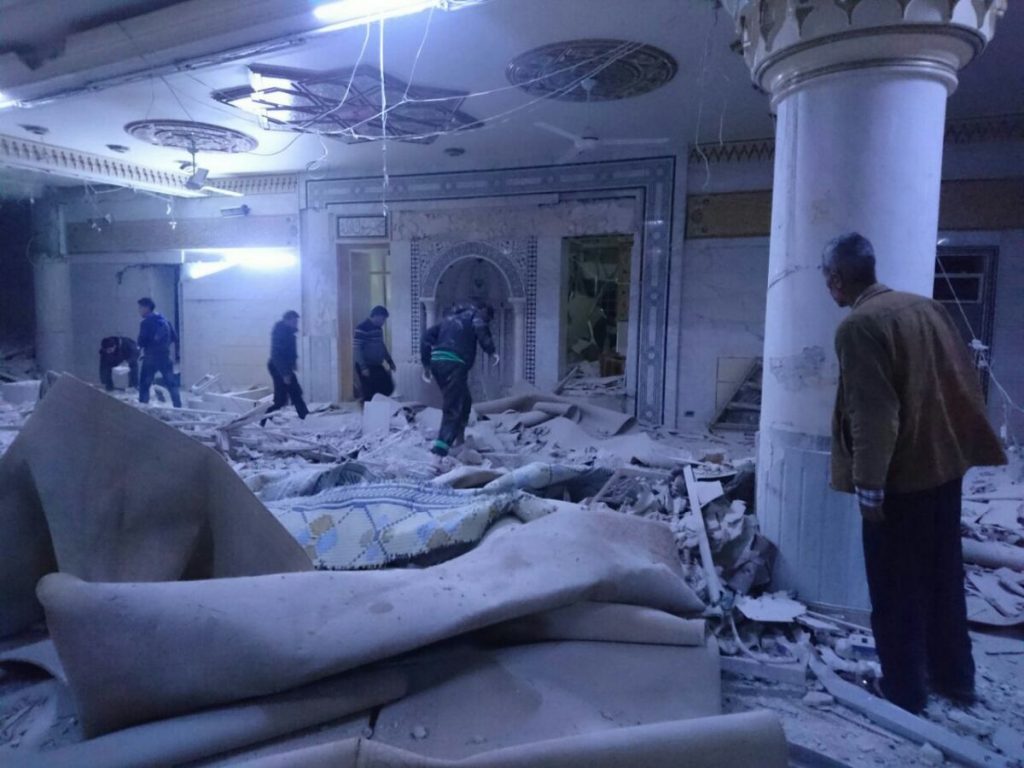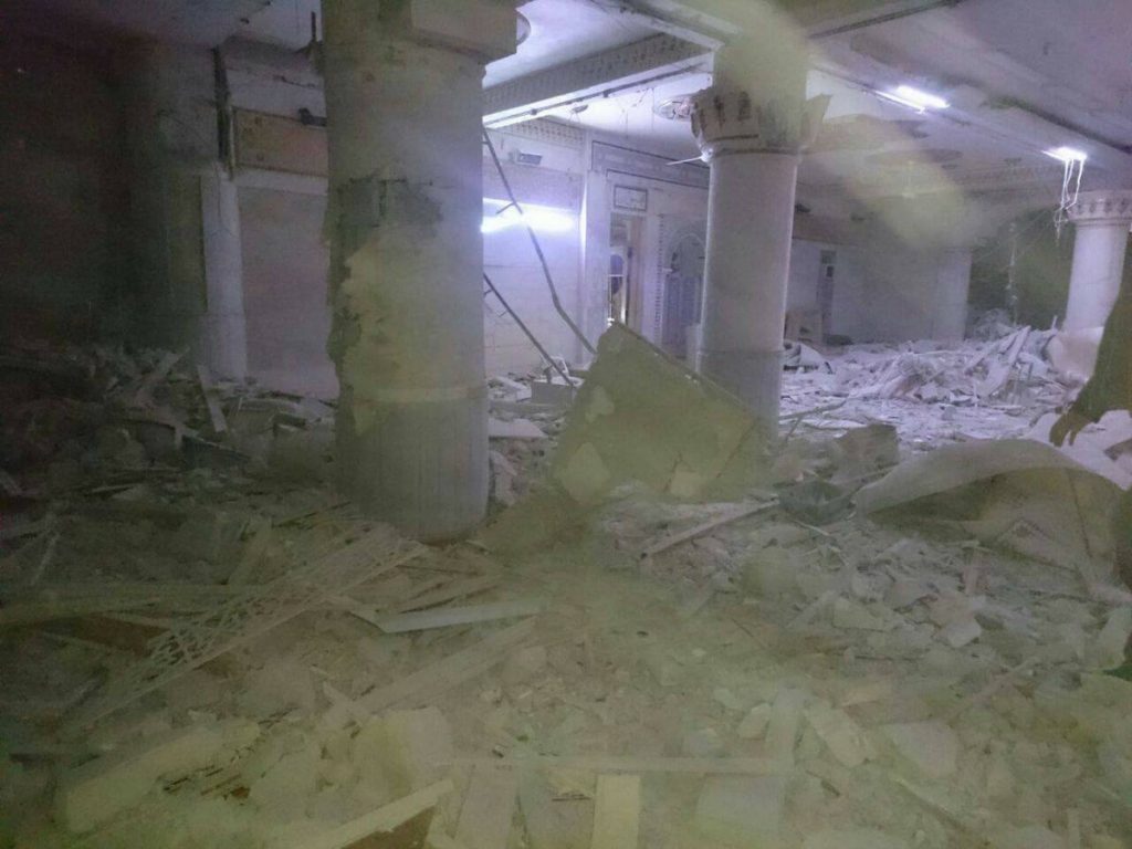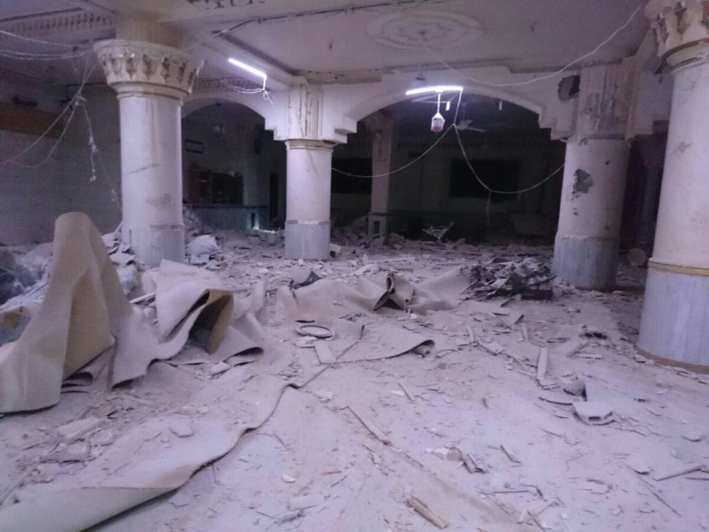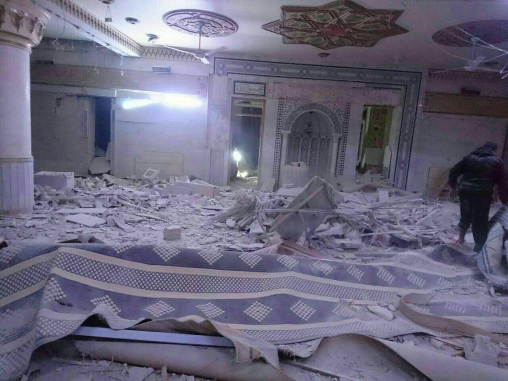 According to sources, propelled grenade launchers, 20 explosive barrel bombs and thermobaric missiles were all used in the raid. Material damage was significant, and some reports said that the Mosque was rendered inoperable. Additionally, it has been reported that farms in the surrounding vicinity were also struck.