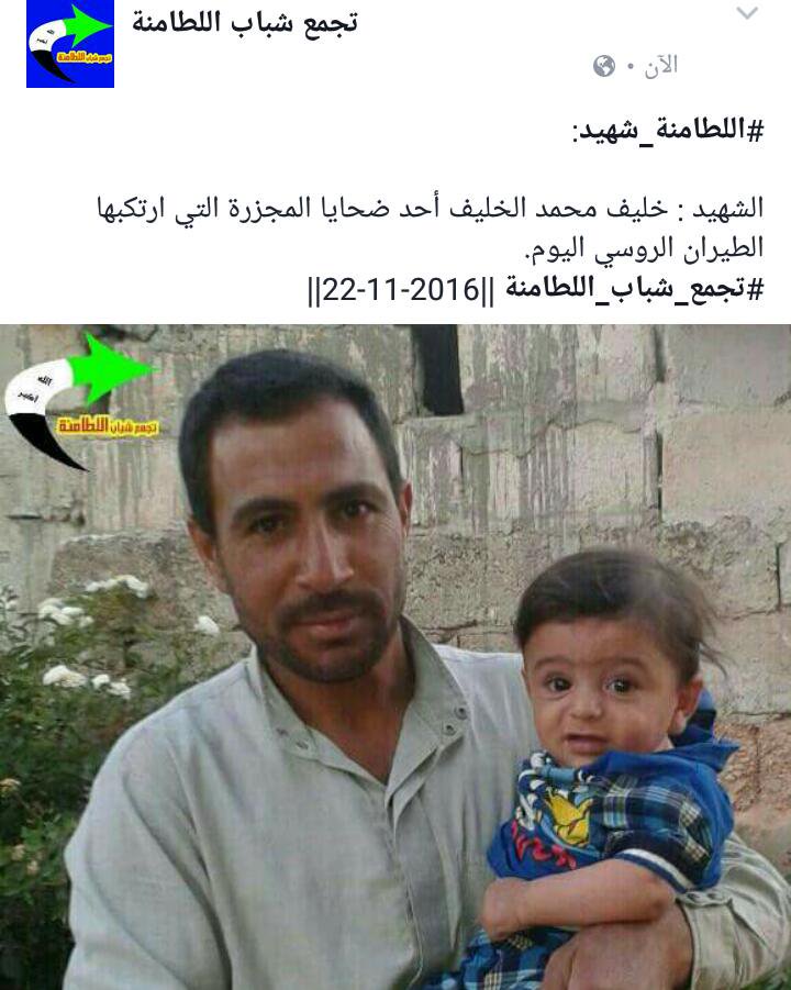 As many as nine civilians were killed – and up to 10 or more were wounded – in alleged airstrikes which struck Al Latamneh. According to sources the initial death toll was six, however this rose throughout the day. Sources were conflicted as to who was to blame for the raids. Some sources attributed blame to the Syrian regime, and others to Russian warplanes.