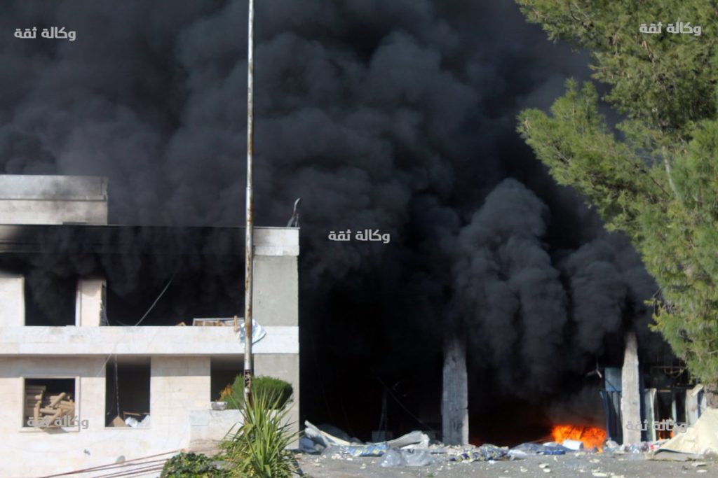 Videos posted by SDC Aleppo and Thiqa News show flames encircling the town of Al Mansoura.