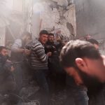 Hazem Alshami published footage of the exact moment the raids hit, and captioned the video “An airstrike with seven rockets from the cities of Sakaba and Hamouriya in eastern Al-Ghouta”.